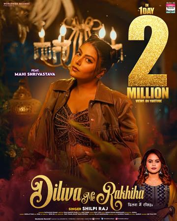भोजपुरी की फेमस सिंगर शिल्पी राज और भोजपुरी की बेस्ट एक्ट्रेस माही श्रीवास्तव की सुपरहिट जोड़ी में रिलीज हुआ बिग ब्लास्ट भोजपुरी गाना ‘दिलवा में रखिहा’ एक दिन में दो मिलियन व्यूज पार कर गया है। ये भोजपुरी गाना वर्ल्डवाइड रिकॉर्ड्स भोजपुरी के ऑफिसियल यूट्यूब चैनल पर रिलीज होते ही वायरल हो गया है। इस गाने के दो मिलियन क्लब में शामिल होने पर सिंगर शिल्पी राज और एक्ट्रेस माही श्रीवास्तव ने जश्न मनाया है। बता दें कि इस गाने को पिक्चराइजेशन काफी रिच और महँगे क्लब में किया गया है, जोकि भोजपुरी गानों की मेकिंग के लिए बहुत बड़ी बात है। इसके वीडियो में दिखाया है कि माही श्रीवास्तव लेदर की जैकेट और हाफ पैंट पहने किसी क्लब में जाती हैं, जहाँ पर हॉट लुक में बहुत लड़कियां नकाब पहने इतराते हुए नजर आ रही है। डिस्को म्यूजिक पर माही श्रीवास्तव ठुमका लगाते हुए कहती हैं कि…
